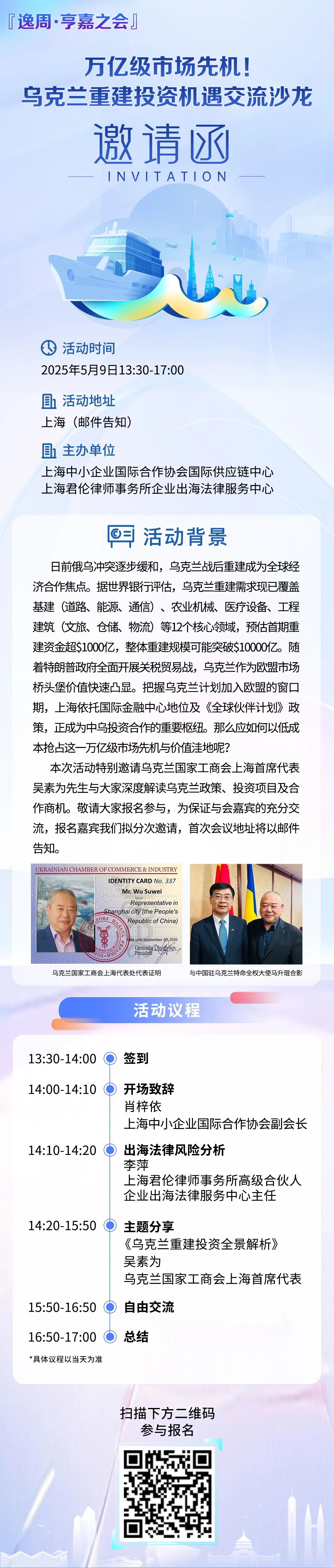 邀请函 | 共话市场先机,乌克兰重建投资机遇交流沙龙